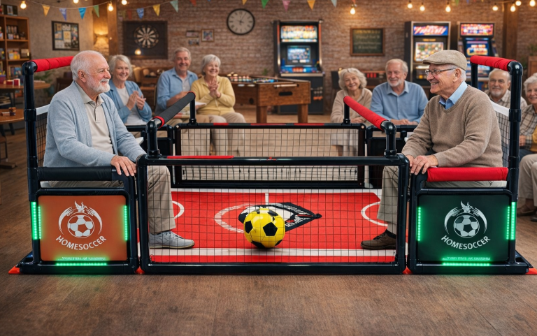 Le HomeSoccer Access+ est spécialement conçu pour offrir une expérience de jeu accessible et inclusive, idéale pour les personnes à mobilité réduite (PMR). Grâce à son double mode de jeu, il permet de jouer assis ou debout, selon les capacités, les envies ou le confort de chaque joueur, afin que chacun puisse participer pleinement au jeu.